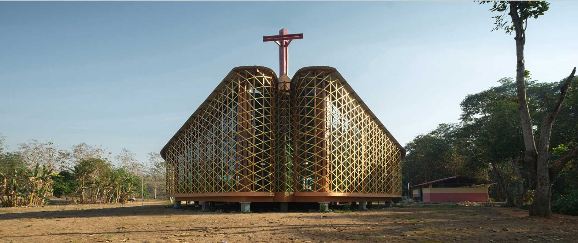 โครงสร้างที่มองเห็นเป็นเส้นใยจัตุรัสที่เกี่ยวพันกัน ขึ้นไปทางแม่น้ำอุ้มผาง เน้นเส้นทางไปจุดที่คริสตชนไปรับศีลมหาสนิท ชึ่งหมายความว่า จุดแห่งความน้ำหนึ่งใจเดียวกัน อีกด้านหนึ่ง หลังคาที่ยื่นลงมา ก่อให้เกิดการต้อนรับอันอบอุ่นแก่ผู้คนที่เข้าก่อนที่จะนำเข้าสู่บริเวณอันศักดิ์สิทธิ์